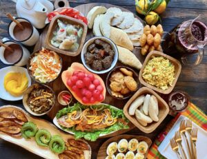 Como no Brasil, Dominica se destaca pela abundância de frutas tropicais, mangas, abacaxis, mamões, bananas, goiabas. A ilha também é conhecida por pratos como o bouyon (um rico ensopado) e o sancocho (um ensopado de peixe com coco), além de frutas-pão e sanduíches de peixe frito, oferecendo uma culinária diversificada e saborosa para os visitantes, é uma mistura vibrante de tradição e sabor, com pratos que contam a história da ilha.